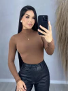 Blusa canelada de manga longa confeccionada em poliéster com elastano.